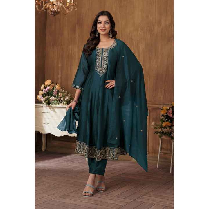 ผ้าไหม vichitra ปักลายพื้นด้านล่างสุดหรูพร้อม dupatta rama