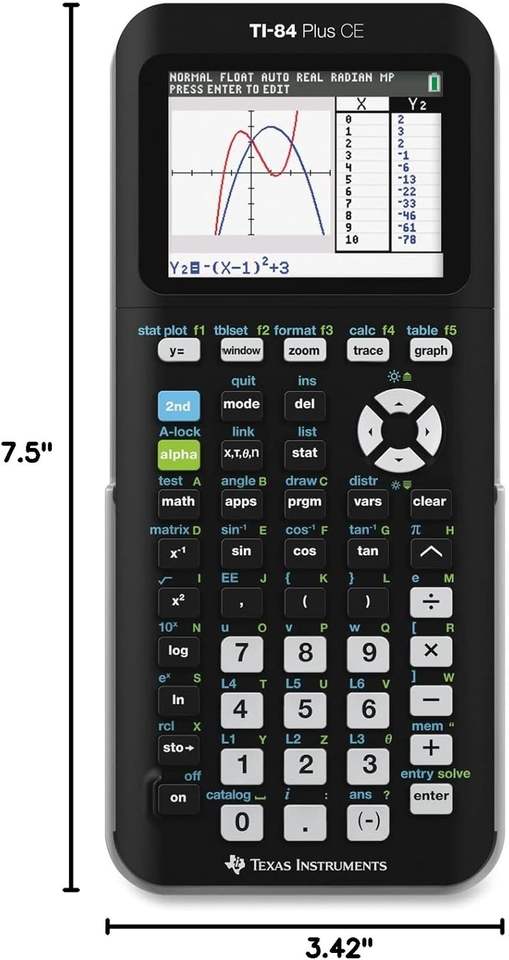 TI-84เครื่องมือเท็กซัสพร้อมเครื่องคิดเลขกราฟสี CE ใช้แบตเตอรี่สำหรับโรงเรียนและสำนักงาน