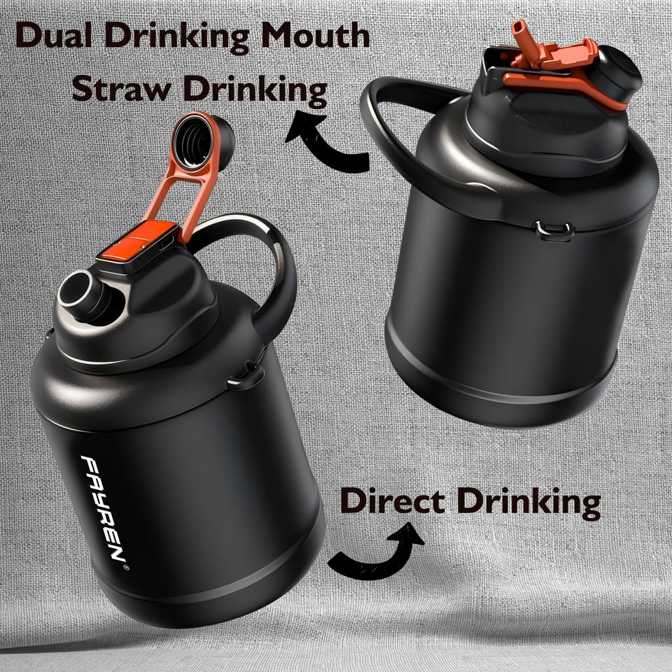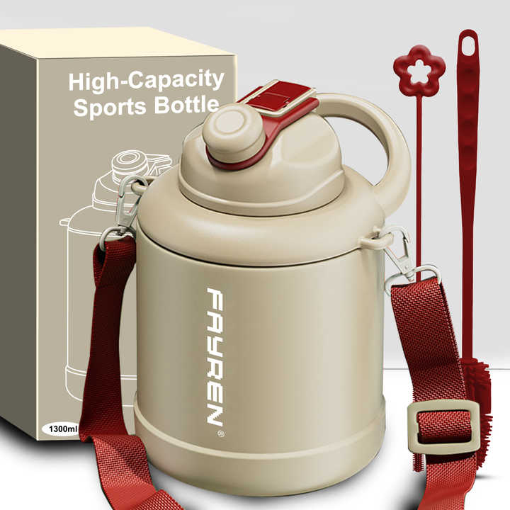 ขวดน้ำเก็บความเย็นสุญญากาศสองชั้น FAYREN ขนาด 1300 มล. 1600 มล. พร้อมสายสะพายสำหรับออกกำลังกายและกิจกรรมกลางแจ้ง