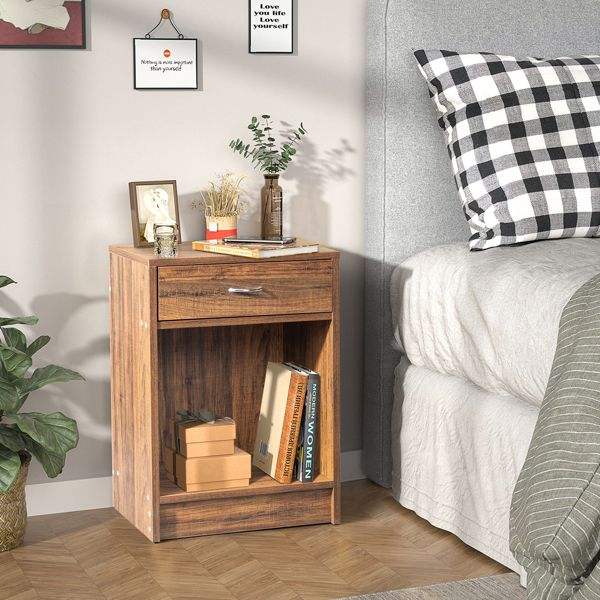 FCH โต๊ะข้างเตียงแบบหนึ่งลิ้นชักสีย้อนยุคพร้อมขาตั้งข้างเตียงแบบสามโค้ง