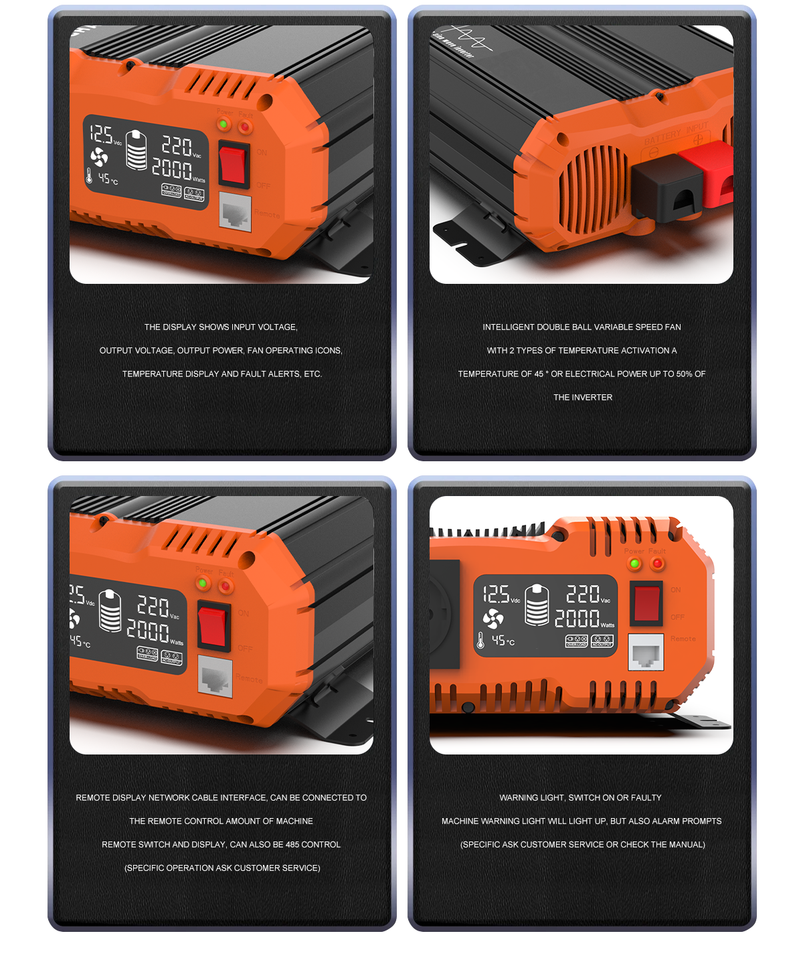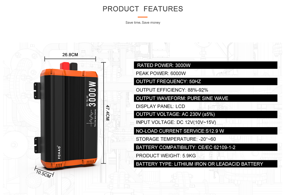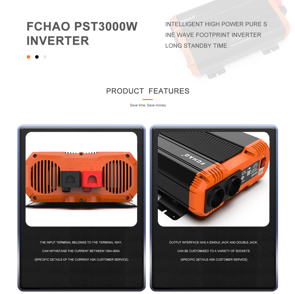Fchao อินเวอร์เตอร์พลังงานเฟสเดียว3KW จอแสดงผล LCD เอาต์พุตคู่12V DC 220V AC เพียวไซน์เวฟสำหรับใช้ในบ้านยานยนต์