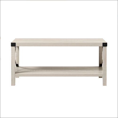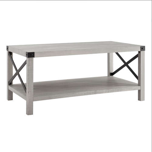 FCJ Convertible Farmhouse Metal-X Coffee Table Glass Top with Storage Stone Grey Lower Shelf for Living Room Furniture