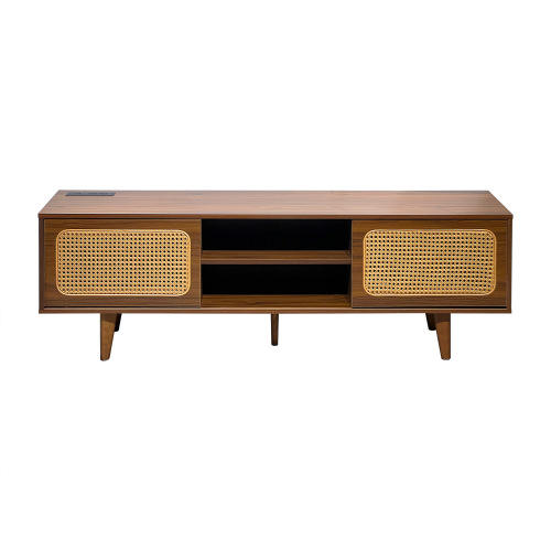 FCJ Luxury Mid Century Modern TV Table Electric Entertainment Cabinet Rattan Design Plywood Wooden Furniture for Living Room