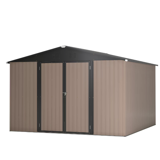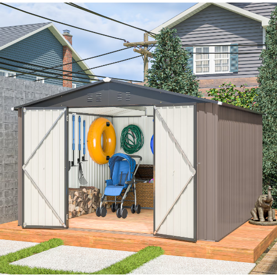 FCJ Steel Garden Shed Double Lockable Door Easy Assembly Wood Frame Rot Proof Storage House for Backyard Use