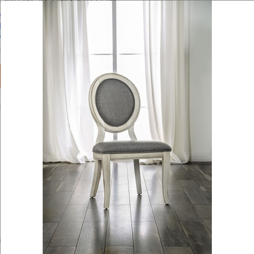 FCJ Transitional Antique White Gray Side Chairs Solid Padded Fabric Seat Set of 2 for Dining Room Furniture for Living Rooms