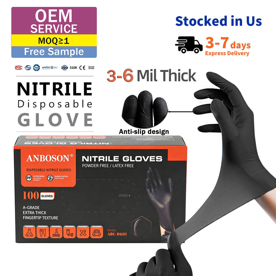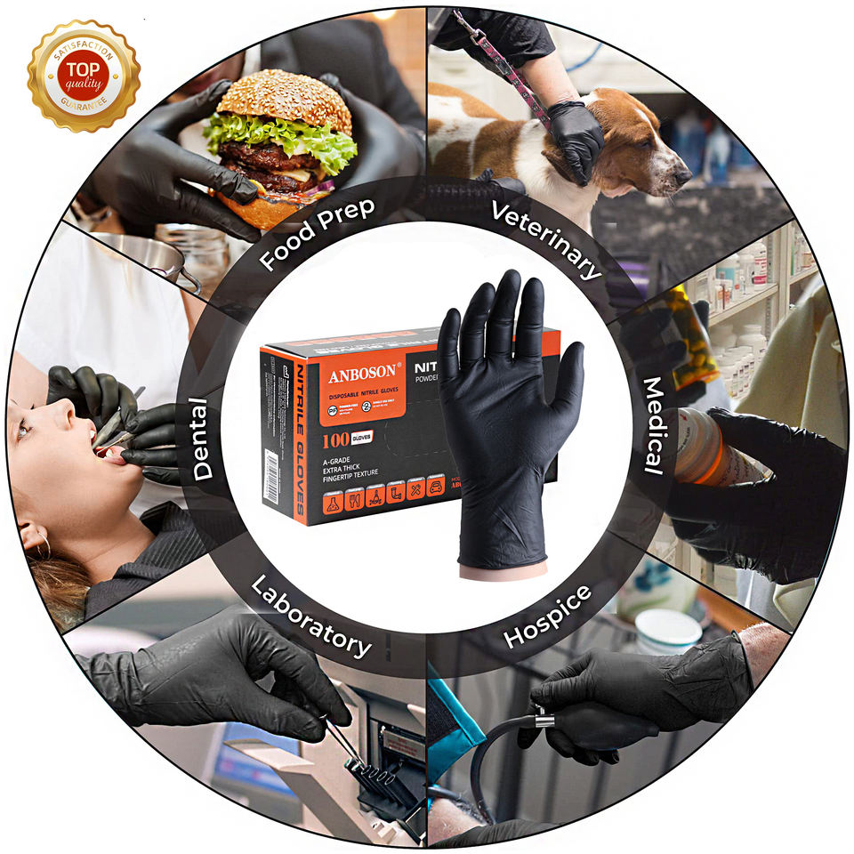 FDA Approved Powder Free Disposable Nitrile Gloves Black Medical Exam Safety Micro Textured Surface Touch