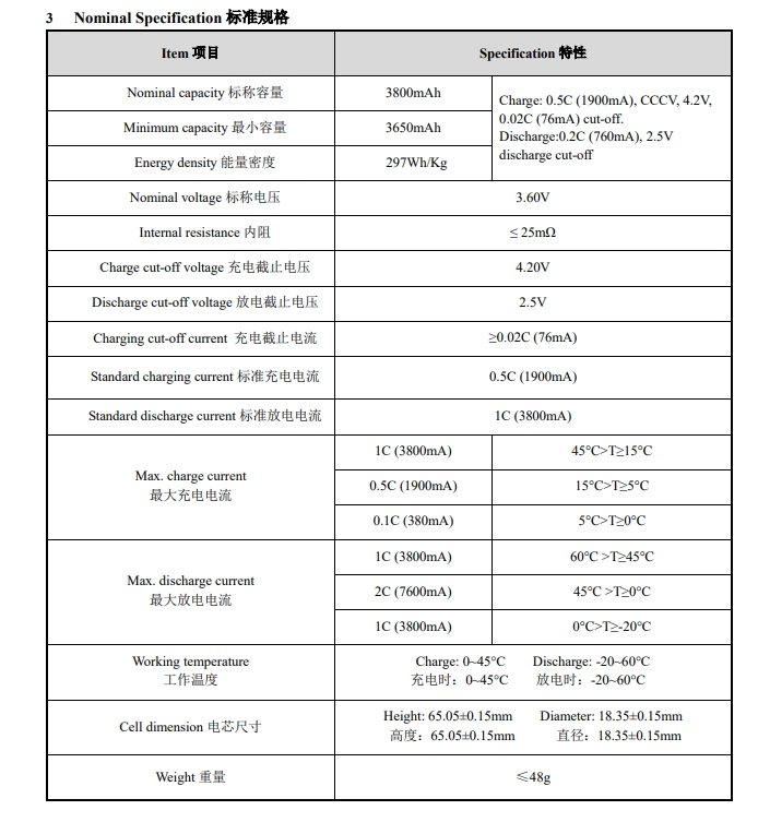หมายเลขรุ่น:3800mah 3.6V size 18*65 mm