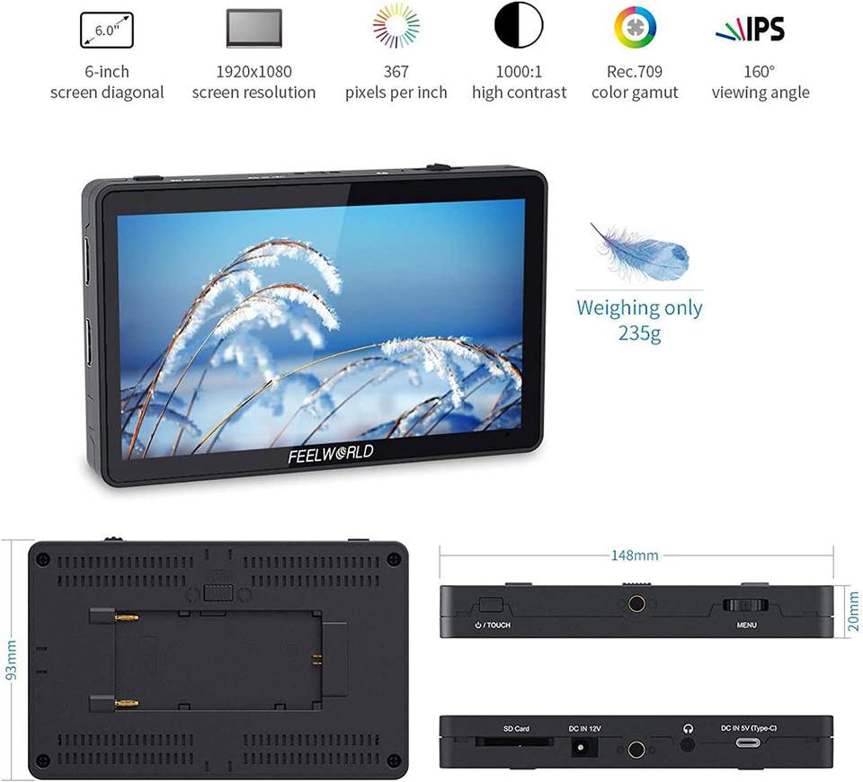 จอภาพ FEELWORLD F6 Plus V2 ขนาด 6 นิ้ว สำหรับกล้อง DSLR แบบ IPS พร้อมฟังก์ชั่นวิดีโอพีคกิ้งโฟกัส หน้าจอสัมผัสสำหรับใช้งานภาคสนาม