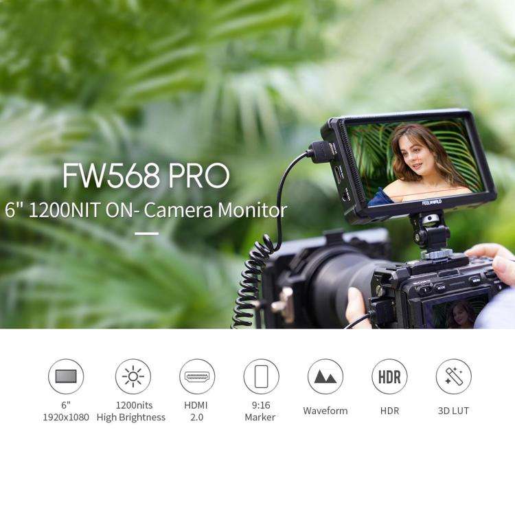 Feelworld FW568 Pro กล้อง1200nit 6นิ้วที่ให้ความสว่างสูงมอนิเตอร์แบบ DSLR ขนาด60Hz IPS IPS IPS สำหรับจอมอนิเตอร์บนหน้าจอ