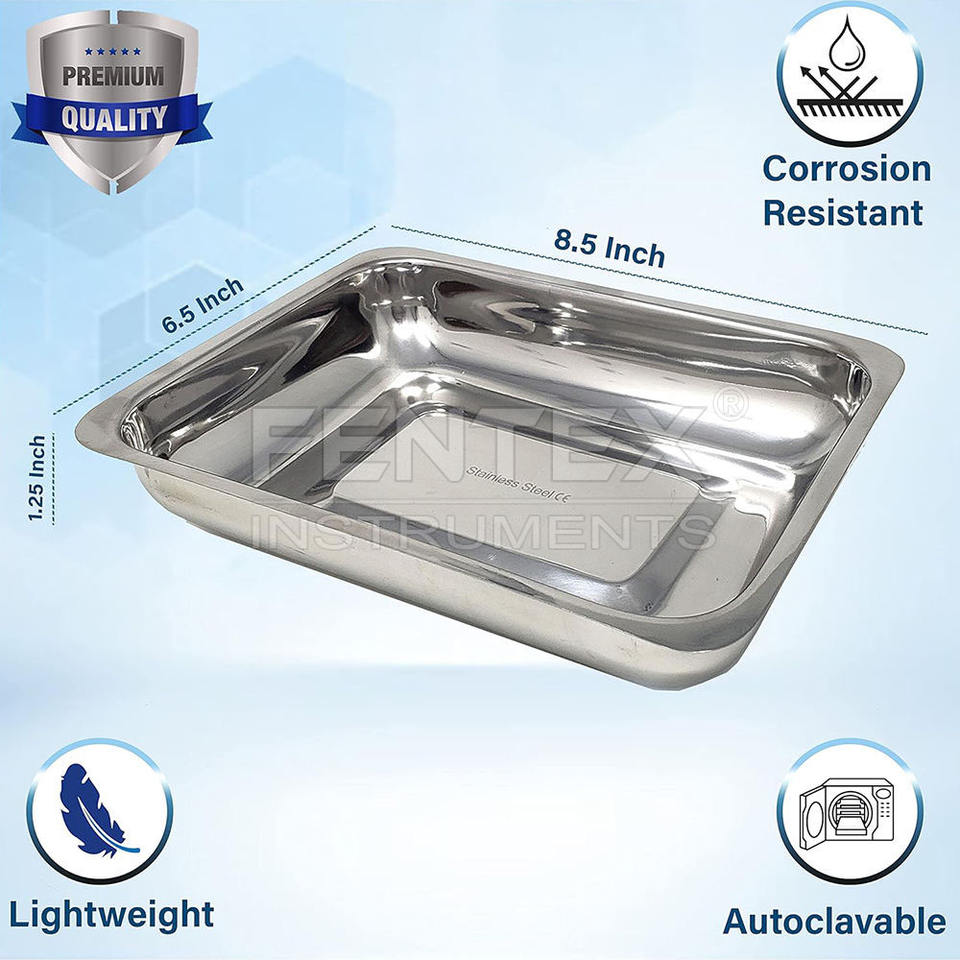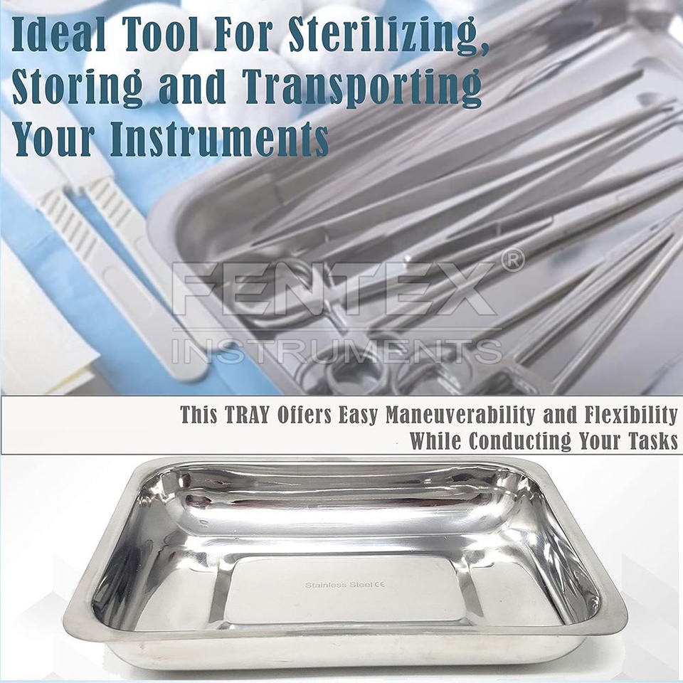 Fentex ถาดเครื่องมือทันตกรรมทางการแพทย์สเตนเลสสตีล304ขอบไร้รอยต่อแบบใช้ซ้ำได้ด้วยมือสำหรับการผ่าตัดในโรงพยาบาลทั่วไป