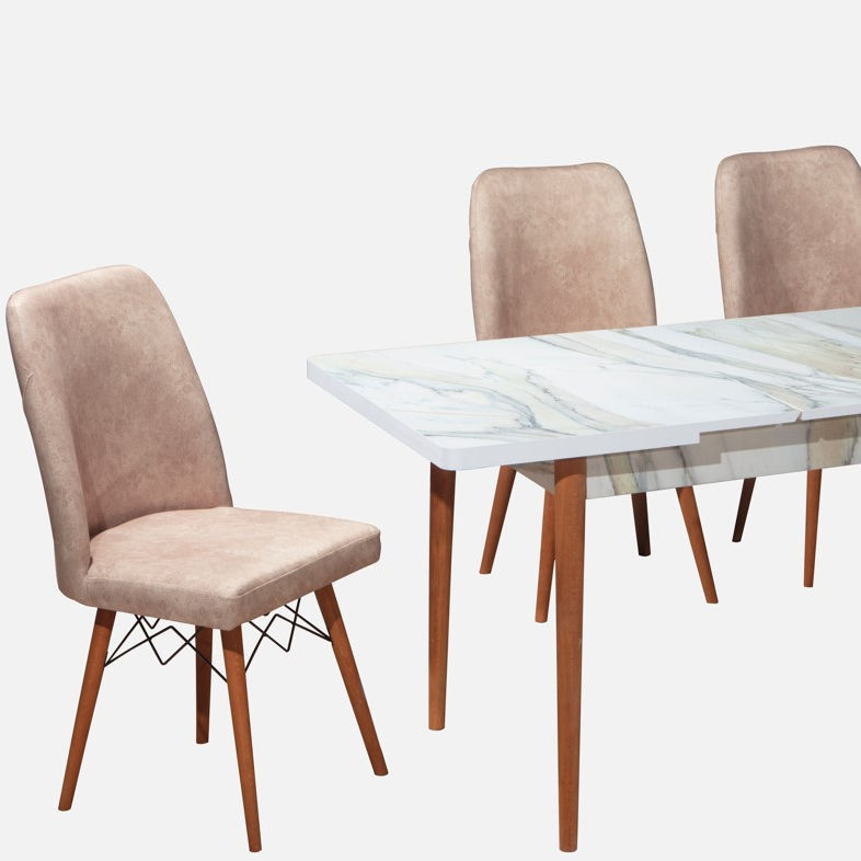 โมเดลเฟอร์นิเจอร์ Fey โต๊ะรับประทานอาหารแบบ6เก้าอี้ที่ทันสมัยขยายได้วัสดุแผ่นกระดานสี่เหลี่ยมผืนผ้าเฟอร์นิเจอร์บ้านที่ทนทาน
