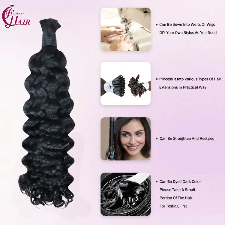 ผมแท้แบบม้วนสไตล์อิตาลี FH 12A สำหรับถักเปียแบบโบโฮ ผมแท้แบบเป็นมัด ไม่มีรอยต่อ สำหรับถักเปีย