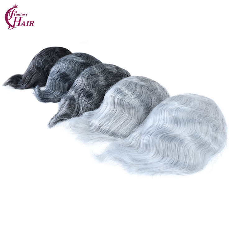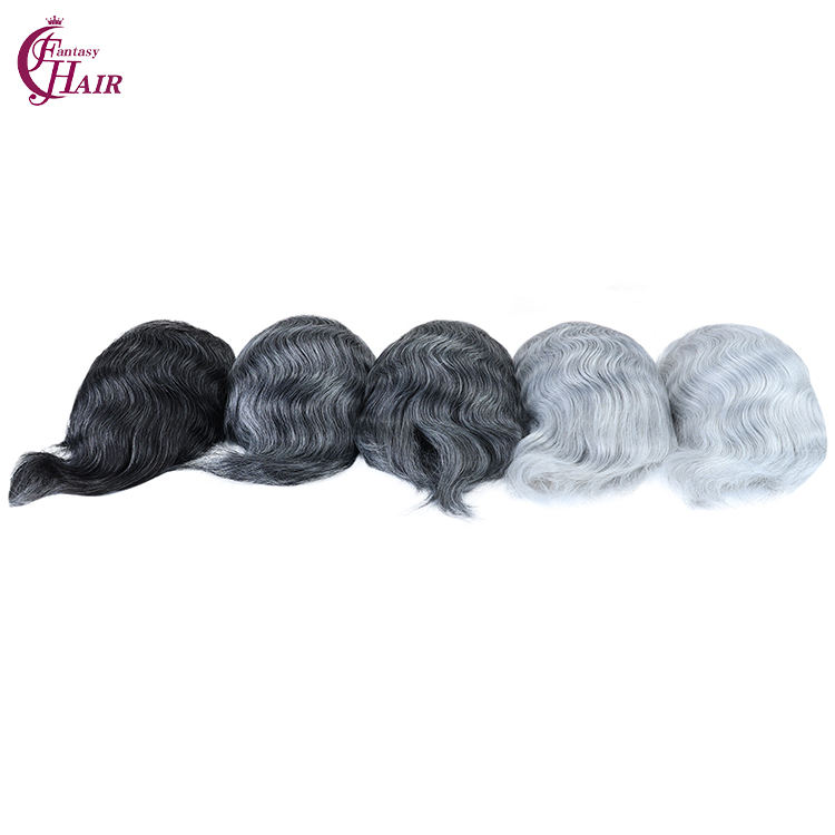 เอฟเอช # ท็อปเปอร์ผมแท้สำหรับผู้ชาย รุ่น 1B90 สีเทา แบบ Pu+lace+mono ทรงฝรั่งเศส ขนาด 8x10 นิ้ว ฐานผมหยิกธรรมชาติ ระบบเปลี่ยนผม