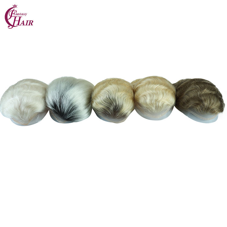 เอฟเอช # ท็อปเปอร์ผมแท้สีบลอนด์ 613 แบบ Pu+lace+mono ทรงฝรั่งเศสสำหรับผู้ชาย ขนาด 8x10 นิ้ว ฐานผมหยิกธรรมชาติ ระบบเปลี่ยนผมทดแทน