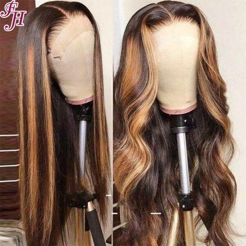 FH Direct Wholesale Good Volume 13x4 Transparent Lace Human Hair Wig Highlight Color Body Wave Lace Front Wig Ready to Ship