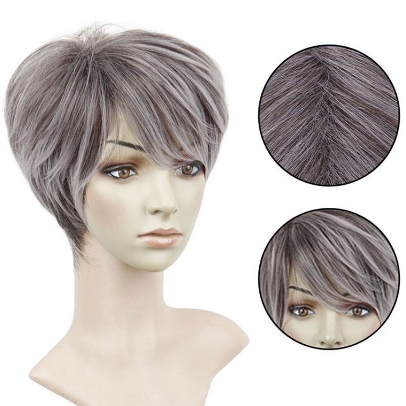 วิกผมสังเคราะห์สีเกรย์สั้นโรงงาน
