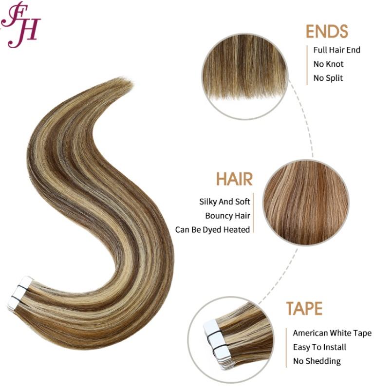 FH เทปต่อผมแบบตรงสองด้านทำจากรัสเซีย24นิ้ว