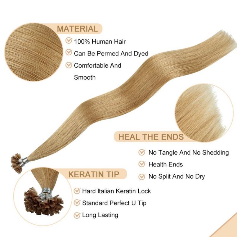 ผมต่อเคราตินปลายแหลมสำหรับต่อผม100% มนุษย์ Fh ต่อผมสีอ่อน #12