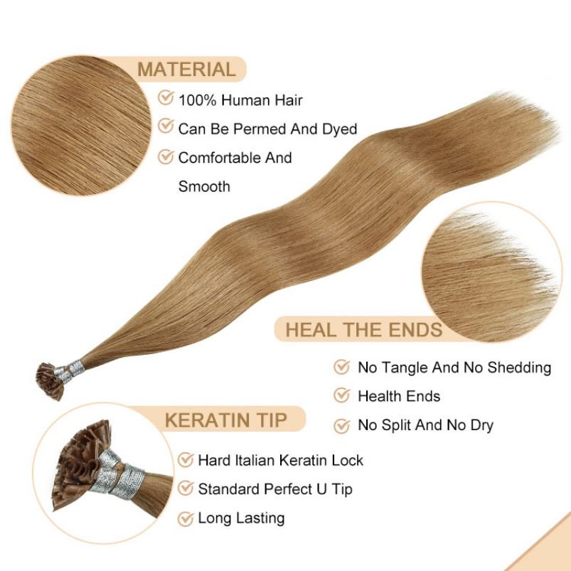 FH ผมต่อจากรัสเซียต่อผม100% มนุษย์ปลายเล็บมีสีอ่อนปลายเล็บทรงเคราติน