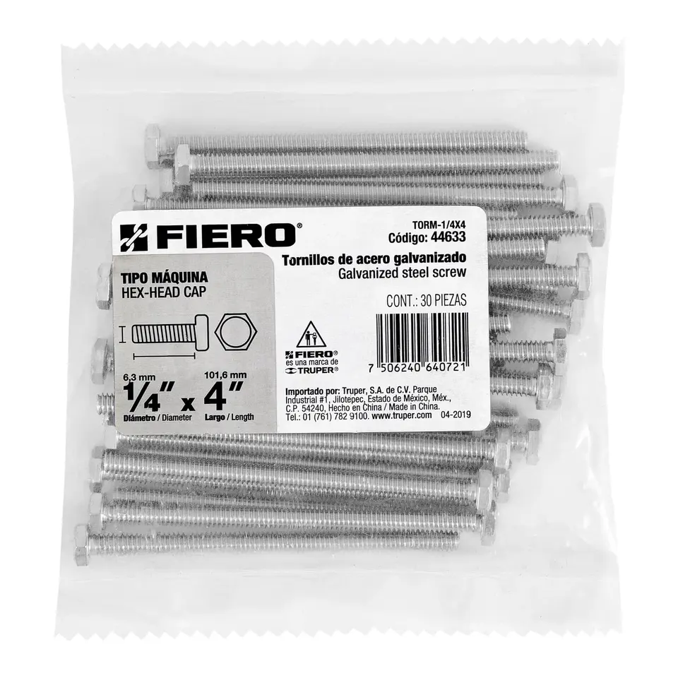 FIERO 6-Unit Box and 30 1/4' X 4' Bag of Machine Screws for Construction Machinery Parts