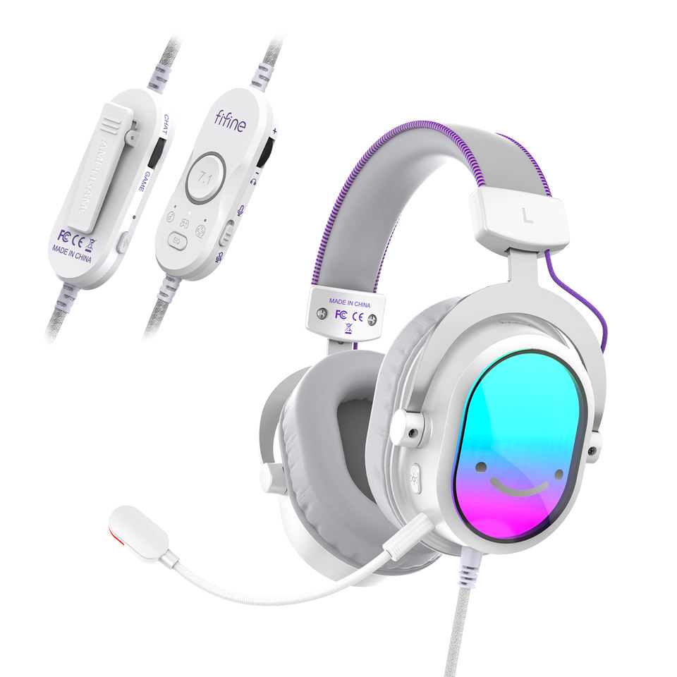 หูฟังเกมมิ่งแบบมีสาย FIFINE H16 เชื่อมต่อผ่าน USB เสียง 7.1 Surround Sound ไฟ RGB ปรับแต่งได้ สีสันสดใส พร้อมไมโครโฟนตัดเสียงรบกวนสำหรับพีซี
