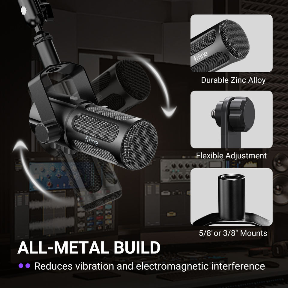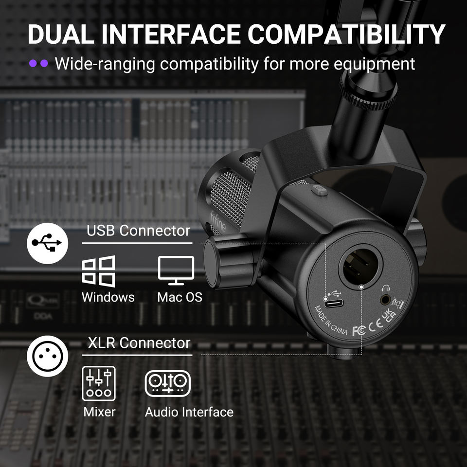 One-click Mute, Real-time Monitoring, Anti-electromagnetic Interference, Fit Standard Boom Arms, 3/8" or 5/8" threads, Mic Gain Knob, Headphone Volume Knob