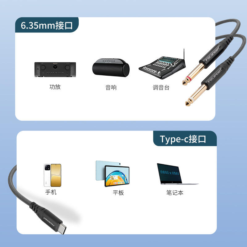 FIFINE ประเภท C ถึง 6.35 มม.สายสัญญาณเสียงแบบหัวคู่สำหรับโทรศัพท์แท็บเล็ตแล็ปท็อปพร้อมสายทองแดงปราศจากออกซิเจน 1.5 3 5 เมตร