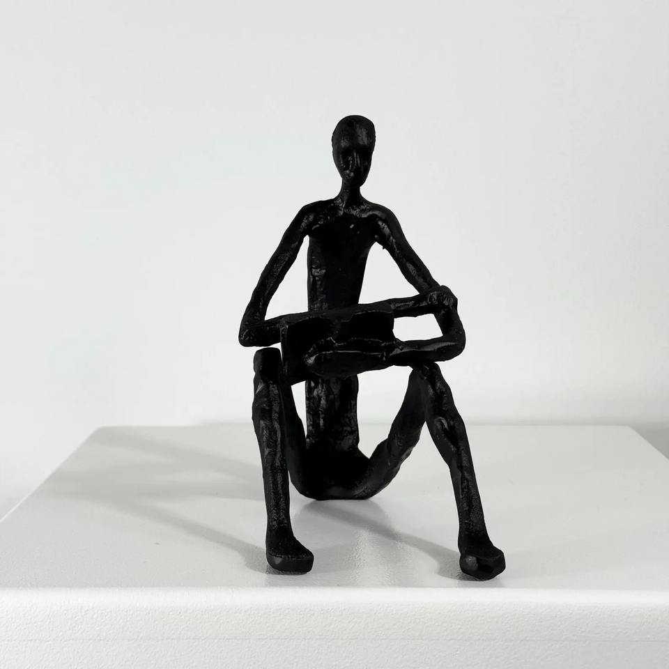 รูปปั้นเหล็กสไตล์โมเดิร์นแบบนั่ง รูปทรงนามธรรมเรียบง่าย เหมาะสำหรับตกแต่งห้องทำงานหรือสตูดิโอสร้างสรรค์ จากอินเดีย
