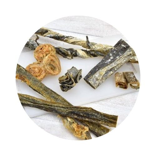 แถบหนังปลาผิวแห้งปลาสำหรับสุนัขขนมขบเคี้ยว