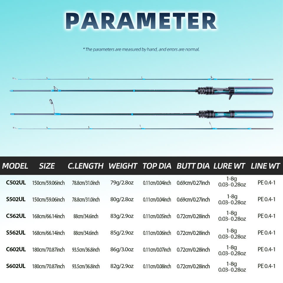 Daqingfeng MK เบ็ดตกปลาคาร์บอนไฟเบอร์น้ำหนักเบามาก1-8กรัมเหยื่อล่อปลาเทราท์แบบหมุนคันเบ็ดน้ำหนักเบาเป็นพิเศษ