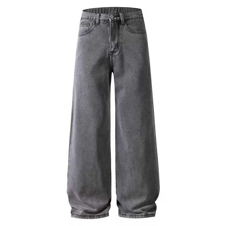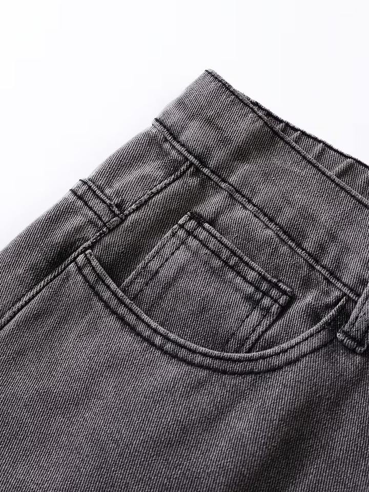 กางเกงยีนส์ทรงตรงสไตล์วินเทจปรับแต่งได้ของ FIT FORNESS INTERNATIONAL สำหรับผู้ชาย ระบายอากาศได้ดี เอวกลาง น้ำหนักเบา ผ้ายีนส์ฟอกสี