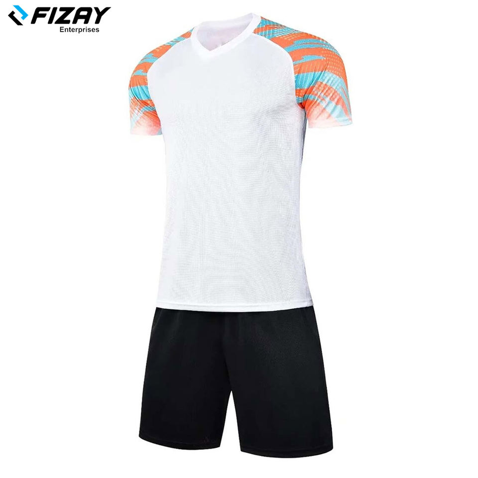 ชุดเล่นฟุตบอลผ้าโพลีเอสเตอร์ระบายได้ดีดีไซน์ใหม่สำหรับผู้ชายชุด100% แบบสั่งทำ