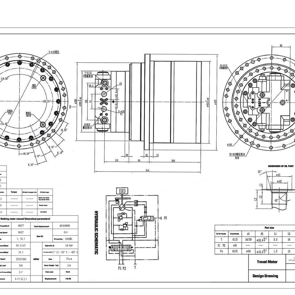 ขับเคลื่อนรอบชิงชนะเลิศสำหรับรถฮุนได R215-7รถ R250LC-7 R250-7 R210LC-7 R210-9 R225-7อะไหล่เครื่องขุด R215-9 TM40มอเตอร์สำหรับเดินทาง TM40VC