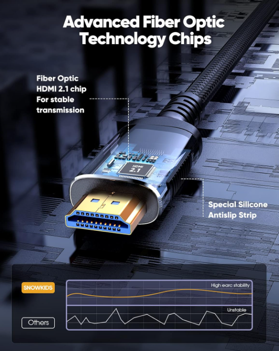 สายเคเบิลใยแก้วนำแสง FJGEAR HDMI 2.1 รองรับความละเอียด 8K 60Hz และ 4K 144Hz แบบ AOC ป้องกันสัญญาณรบกวน สำหรับเดสก์ท็อป/แล็ปท็อป/จอมอนิเตอร์ โฮมเธียเตอร์ เกมมิ่ง ได้รับการรับรองมาตรฐาน CE