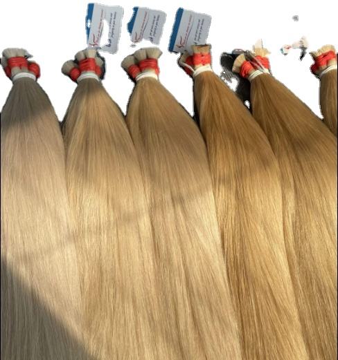 ผมต่อแบบตรงสีบลอนด์ของมนุษย์ผม100% บริสุทธิ์ผมเรมี่นุ่มลื่นไม่หลุดร่วงฟู