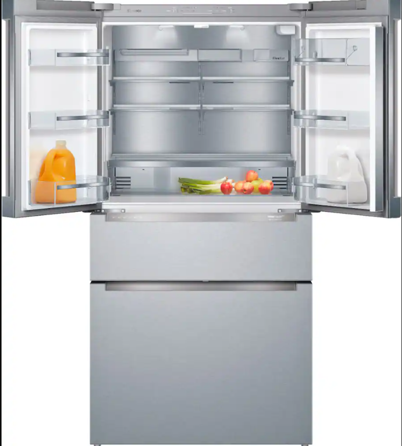 แฟลชเซลส์ บอช 800 ซีรีส์ 36 นิ้ว 20.5 คิว ตู้เย็นอัจฉริยะแบบฝรั่งเศส ประตูแบบฝรั่งเศส ติดตั้งใต้เคาน์เตอร์ ความลึกมาตรฐาน สำหรับใช้ในบ้านและรถบ้าน