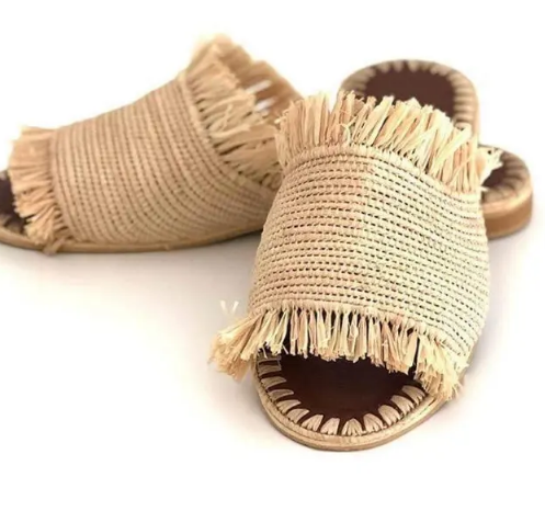 รองเท้าแตะ Raffia แบน, รองเท้าแตะ Raffia, รองเท้าแฮนด์เมด, รองเท้าปาล์มชนิดหนึ่ง, รองเท้าแตะฤดูร้อน, รองเท้าฤดูร้อนของผู้หญิง, รองเท้าชายหาด, รองเท้าแตะโมร็อกโก