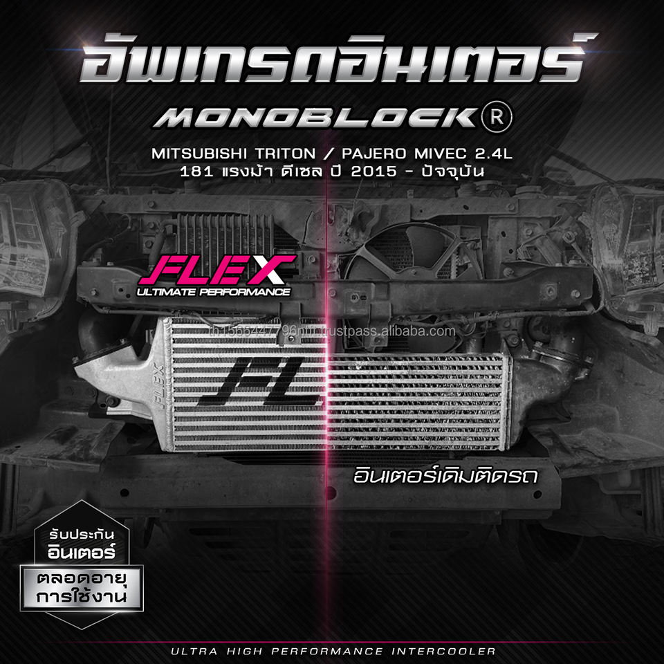 อินเตอร์คูลเลอร์ FLEX Bold รุ่น MONOBLOCK FLEX สำหรับรถยนต์มิตซูบิชิ ไทรทัน / ปาเจโร่ MIVEC 2.4L 181 แรงม้า ดีเซล ปี 2015 - ปัจจุบัน