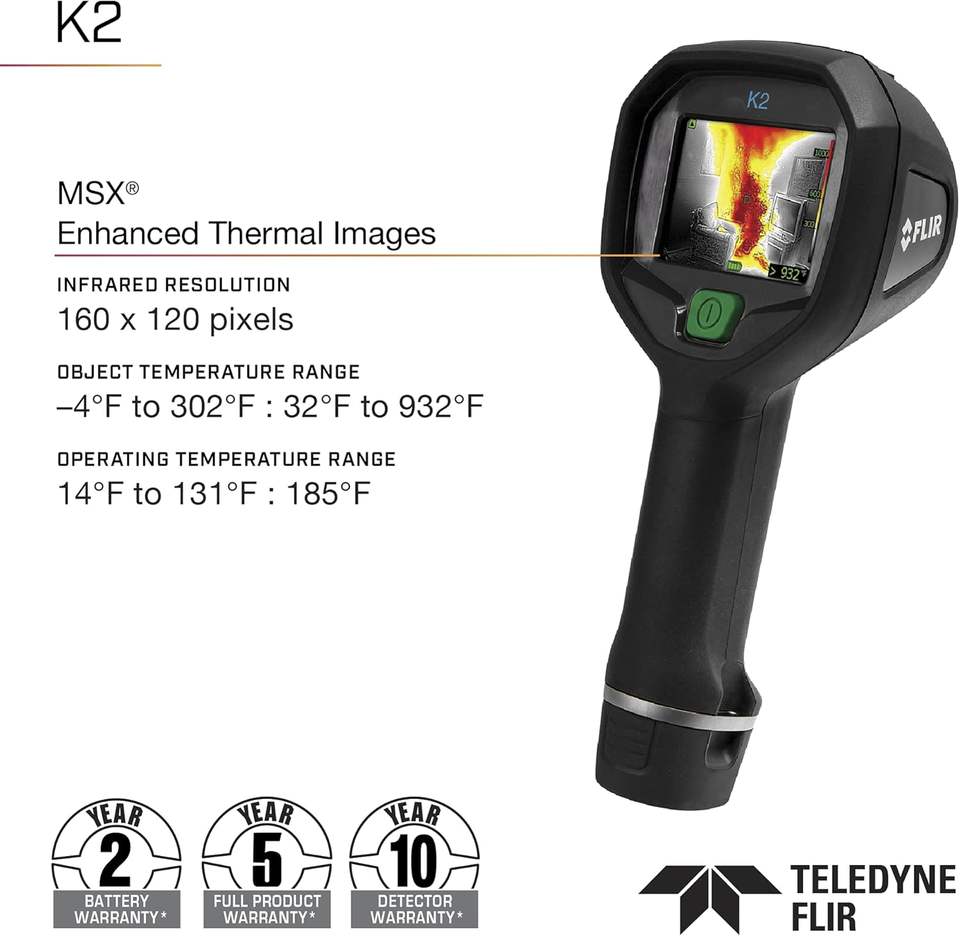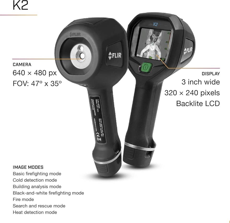กล้องถ่ายภาพความร้อนขนาดกะทัดรัด FLIR K2 สำหรับนักดับเพลิง ระบบ MSX สำหรับการถ่ายภาพแบบไดนามิกหลายสเปกตรัม ใช้งานได้ในอุณหภูมิสูงสุด 500°F