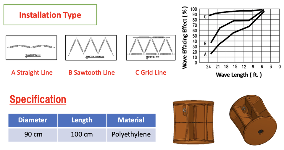 ตัวลดแรงคลื่นลอยน้ำ แผงกั้นคลื่นพลาสติก HDPE สำหรับทะเล