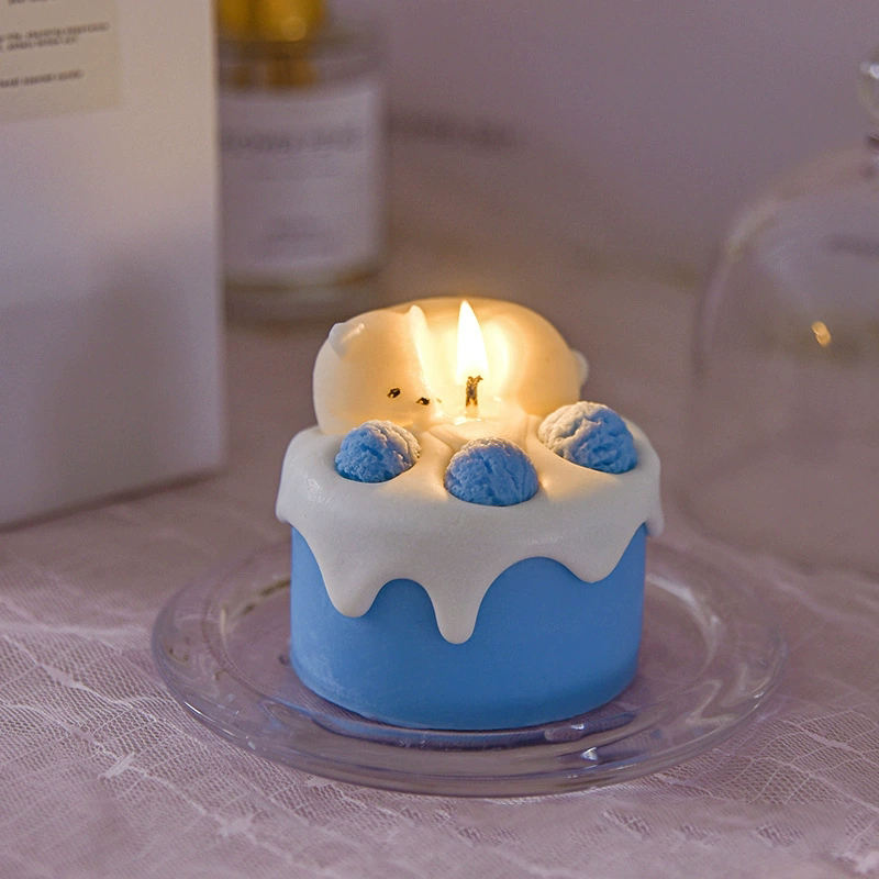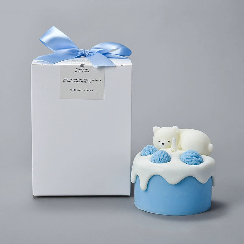 เทียนหอมระเหยถั่วเหลืองทรงหมีสีฟ้ารูปหมีเทียนหอมระเหยขี้ผึ้งถั่วเหลืองใช้ตกแต่งเป็นของขวัญสำหรับแขกวันหยุดคุณครู