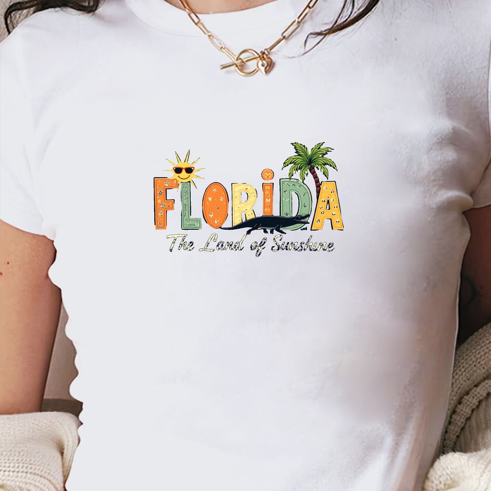 เสื้อยืดสั้นแฟชั่นผู้หญิง Florida The Land of Sunshine