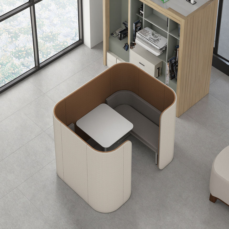 โฟลว์1ฝักสำนักงานกันเสียงพร้อมโซฟาที่สะดวกสบายสำหรับการพูดคุยกับทีมส่วนตัว