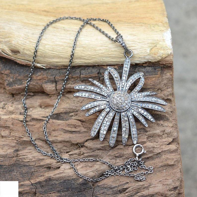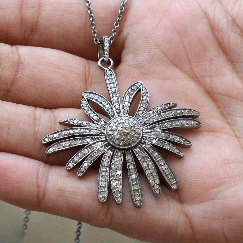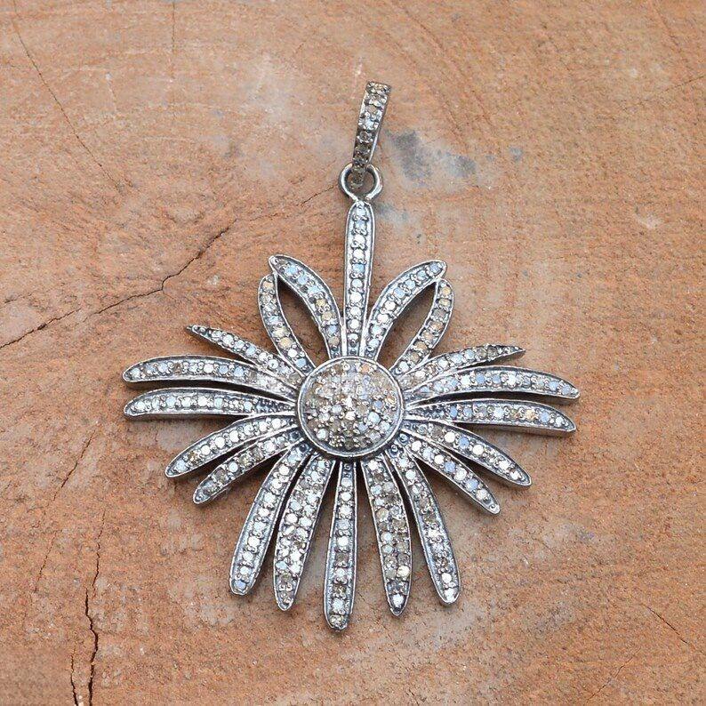 name or words:FLOWER 925 Sterling Silver Pave Diamond Pendant