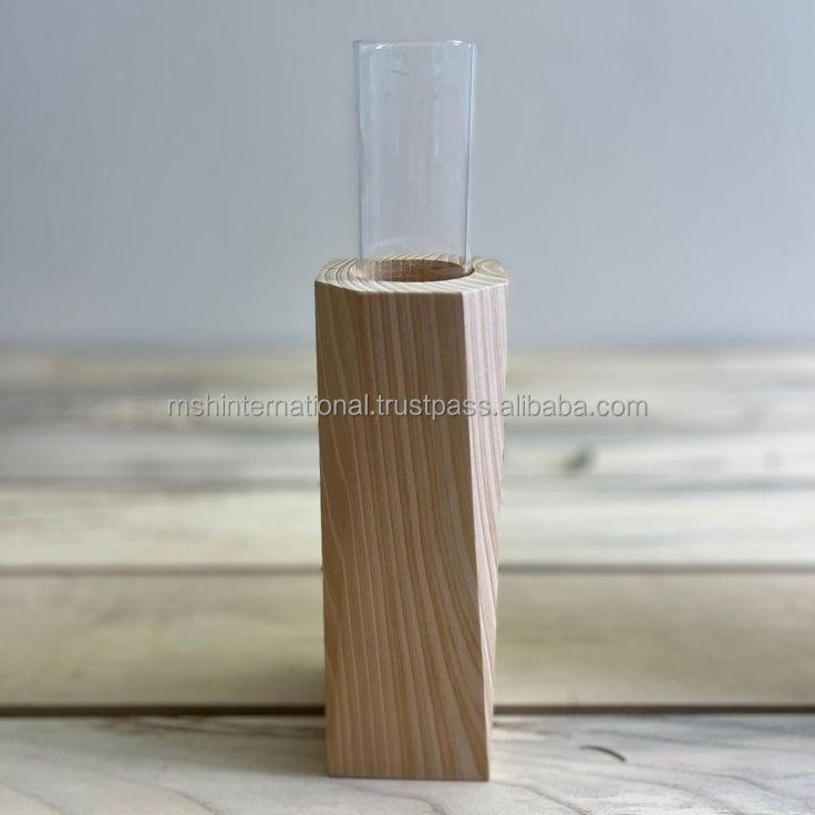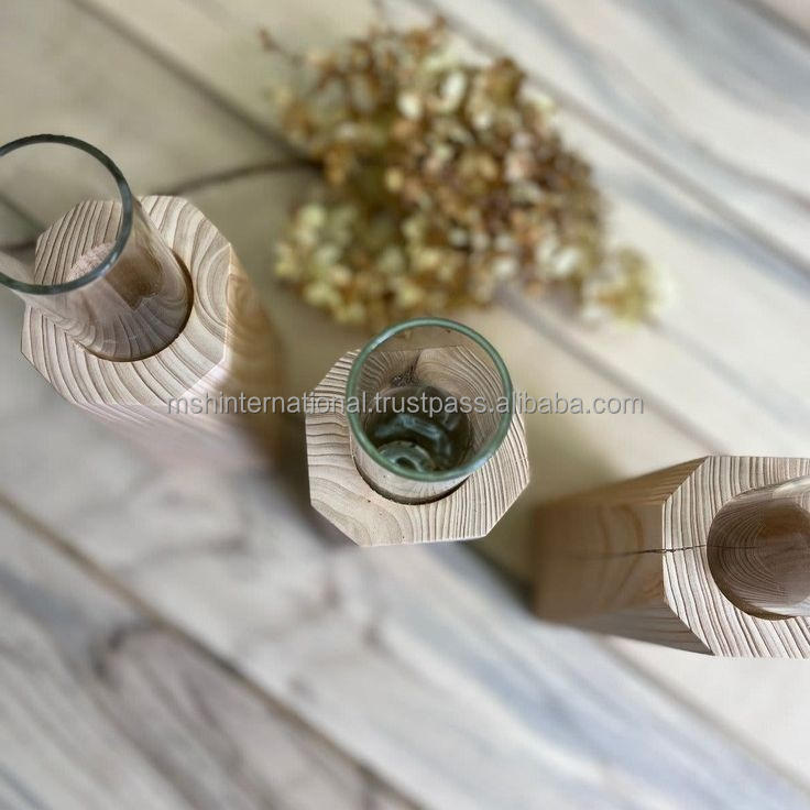 ที่วางกระถางต้นไม้ทำจากโลหะรูปทรงแจกันแก้วพร้อมที่วางแบบหมุนได้พร้อมหลอดสำหรับปลูกต้นไม้ทำจากไม้