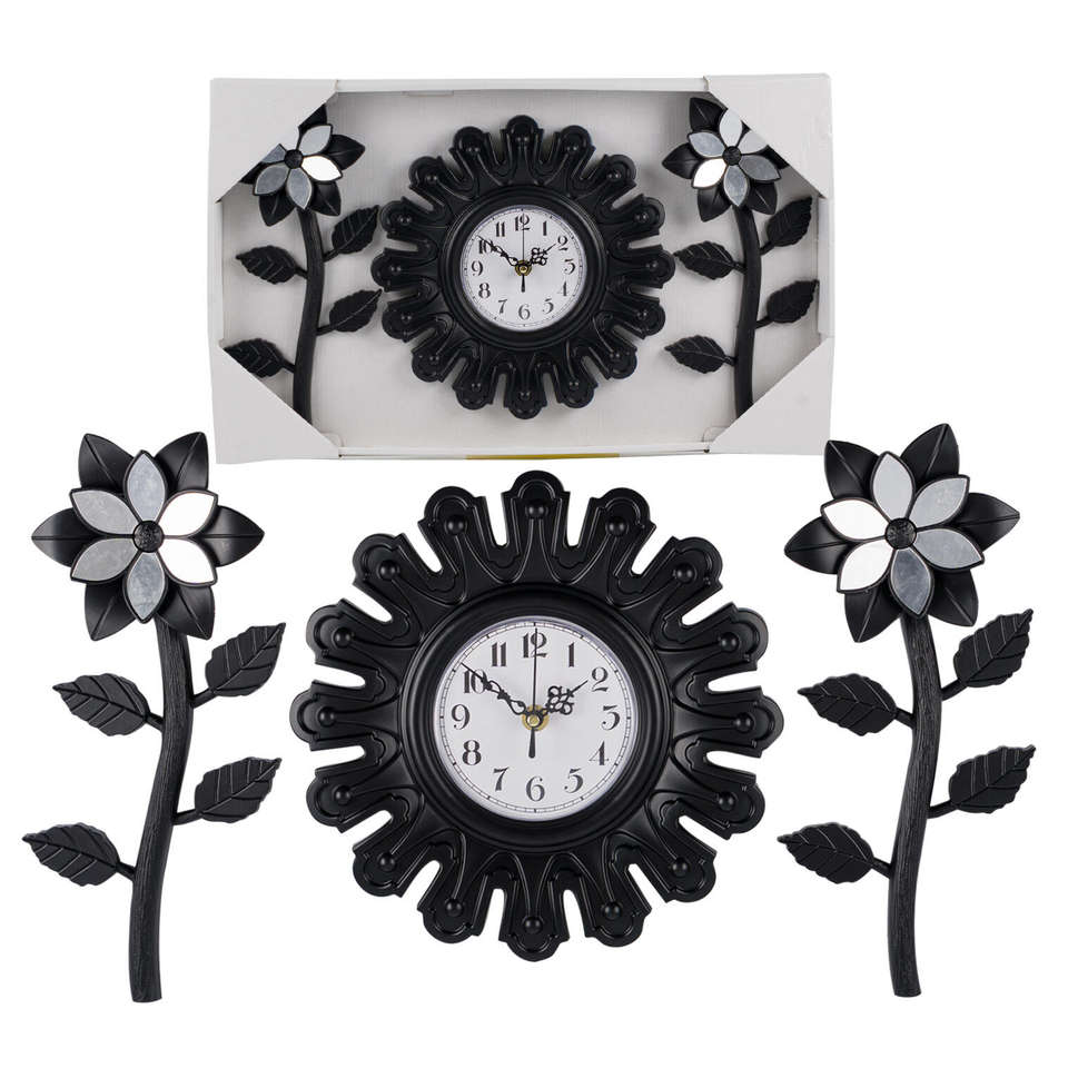 ชุดนาฬิกาดอกไม้ติดผนัง10นิ้ว3ชิ้นสีดำผลิตในประเทศจีน