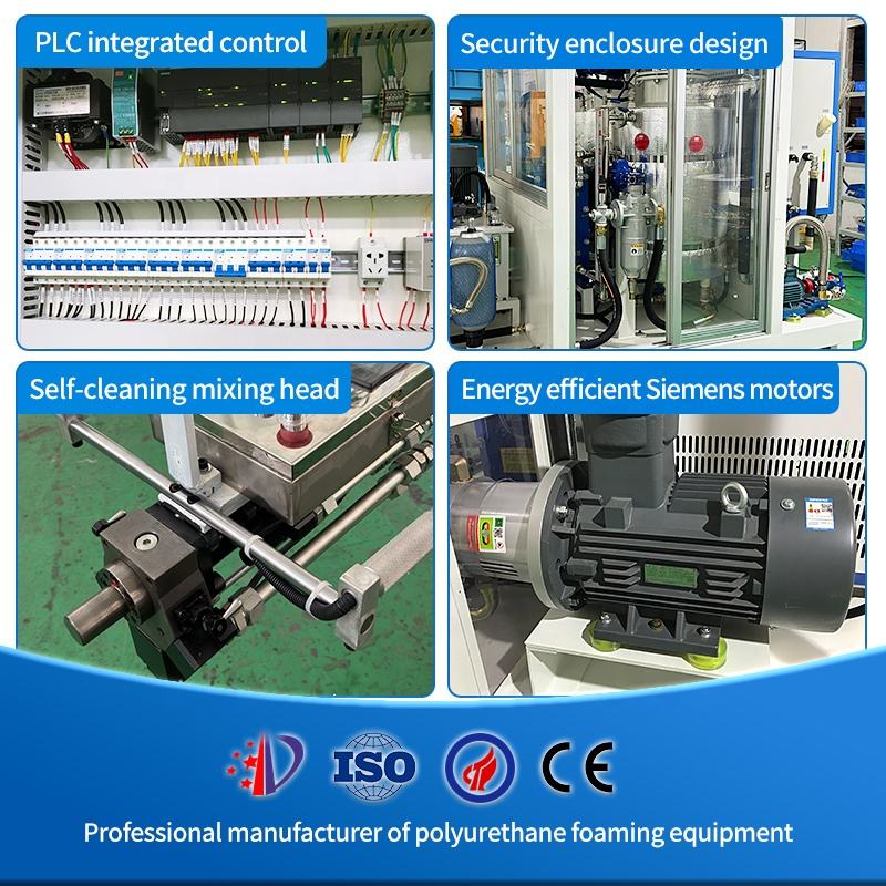 PLC, Mixing head, Polyurethane special pump, Siemens motor magnet, Siemens PLC controller, Kracht flowmeter in Germany, alkane gas detection system, MSA gas detector, Hot and cold thermostats