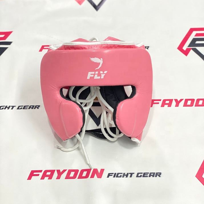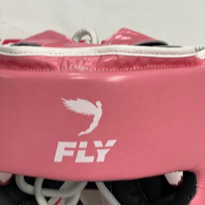 FLY Leather Pink White All Colors & Sizes Available Adjustable Open Face Headgear for Kickboxing Muay Thai MMA Training