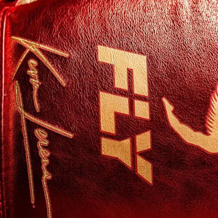 ถุงมือชกมวยหนังแท้ FLY Red แบบปักลายตามสั่ง สำหรับฝึกซ้อมคิกบ็อกซิ่ง ยี่ห้อ Fairtex ระบายอากาศได้ดี ไม่ลื่น
