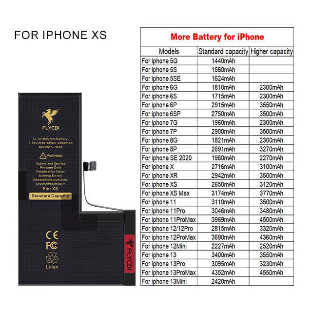 แบตเตอรี่ทดแทนสำหรับ iPhone X, Xs, Xr, Xs Max ของ FLYCDI ราคาโรงงานจากจีน แบตเตอรี่ลิเธียมไอออนสำหรับโทรศัพท์มือถือ